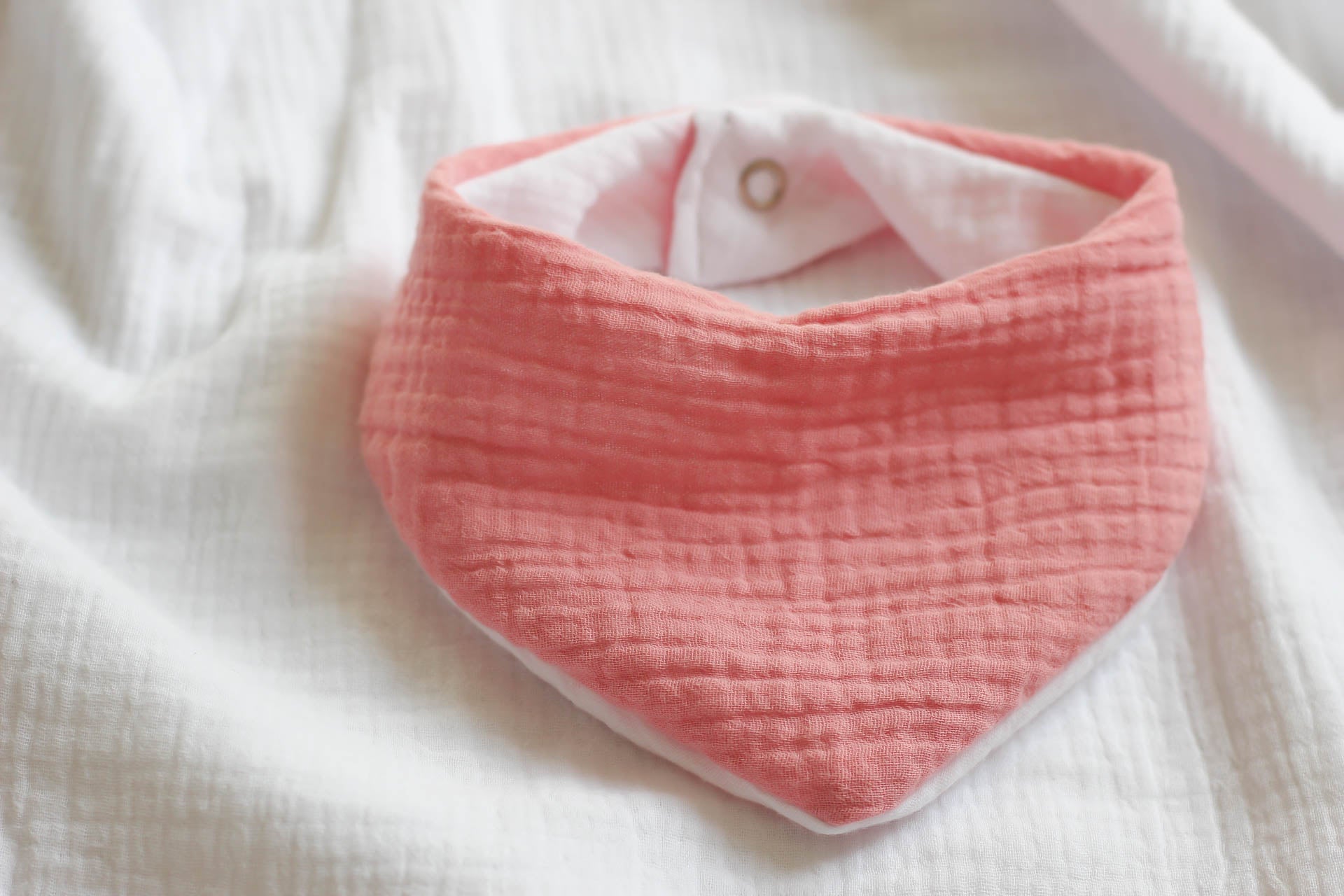 Praktisch: da es ein Wendehalstuch ist, können beide Seiten getragen werden, immer passend zum Outfit. Eine Musselinstoff-Seite in unserem "Punschkrapfi", die andere Seite in einem reinen weiß.